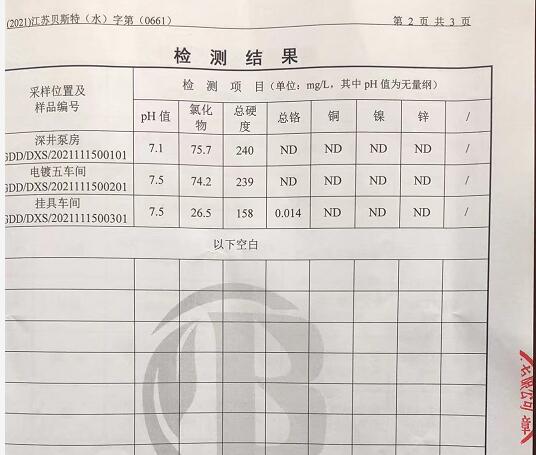 泰州市龍溝電鍍科技有限公司2021年度土壤和地下水檢測數據公示如下: